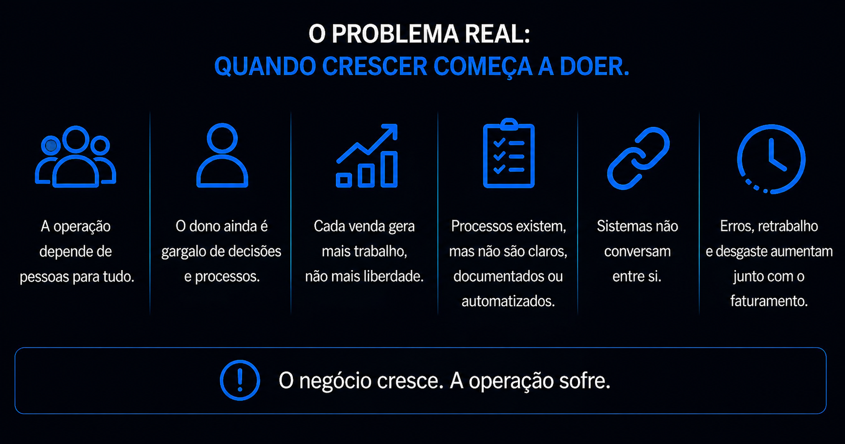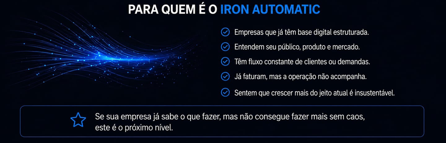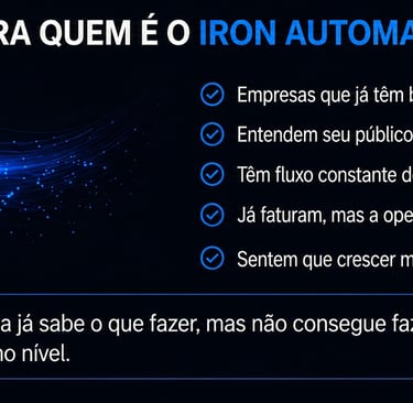 Iron Automatic existe para resolver isso: Crescer sem quebrar a operação.